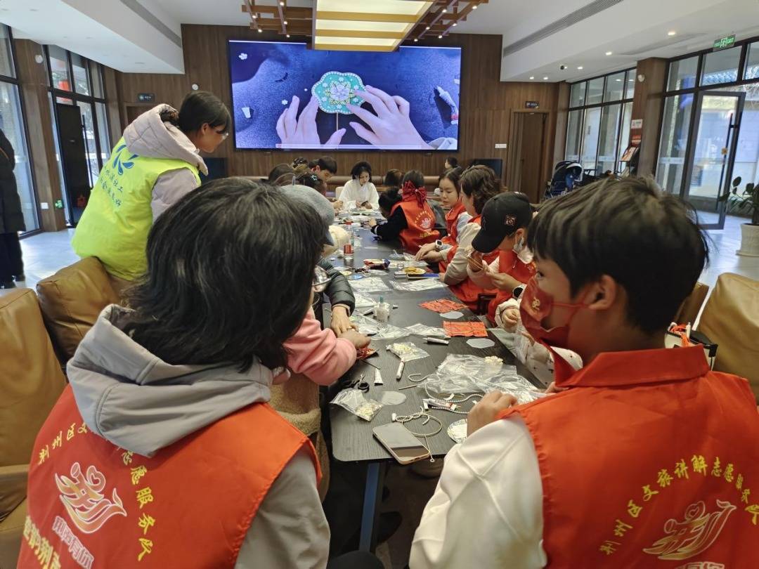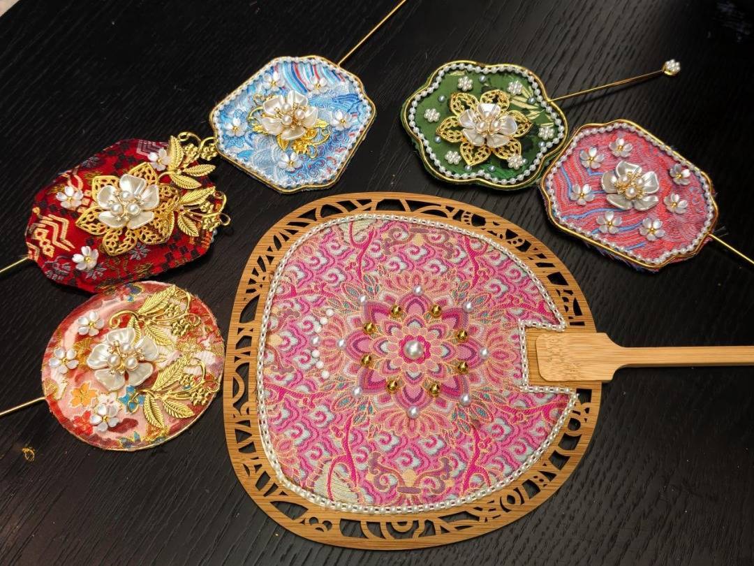 作为汉服讲解志愿队的特色标识,非遗珍珠扇手作环节将活动推向高潮。在小水滴社工的细致指导下,志愿者们精心制作出一把把精美雅致的团扇。这些手作珍珠扇未来将成为该志愿队的专属文化符号,在讲解服务中灵动展现荆州风采,提升游客的文化体验感。