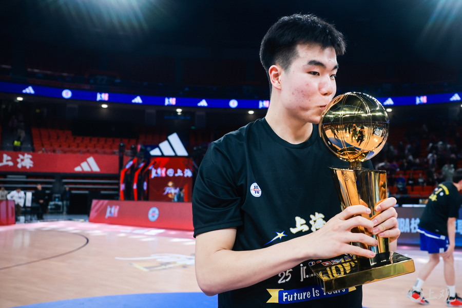 南模中学球员张懿赵杰贡献25分13篮板3抢断2盖帽,荣获赛事MOP(最有价值球员)称号。